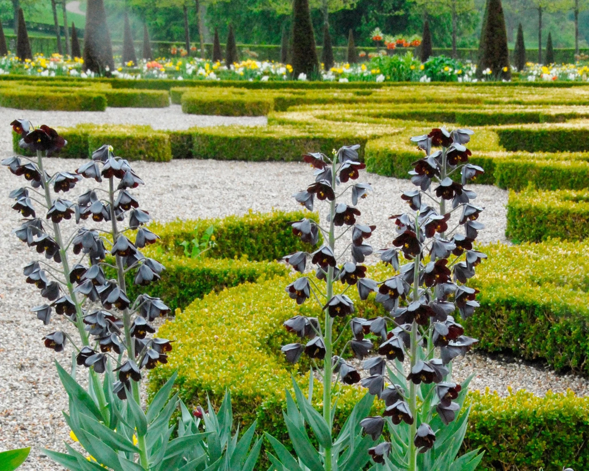 What are those tall flower stems supporting? Are the blooms black? Is it plum? Let Fritillaria persica ‘Twin Towers Tribute’ baffle your colour definitions and transform your garden at one elegant stroke. Rising head and shoulders above your other spring flowering bulbs, this near-black fritillary adds its special brand of drama to your flower beds. Join the ranks of gardeners who have appreciated this unique plant since 1573. It’s part of your gardening heritage, but it’s also a show-stopper.