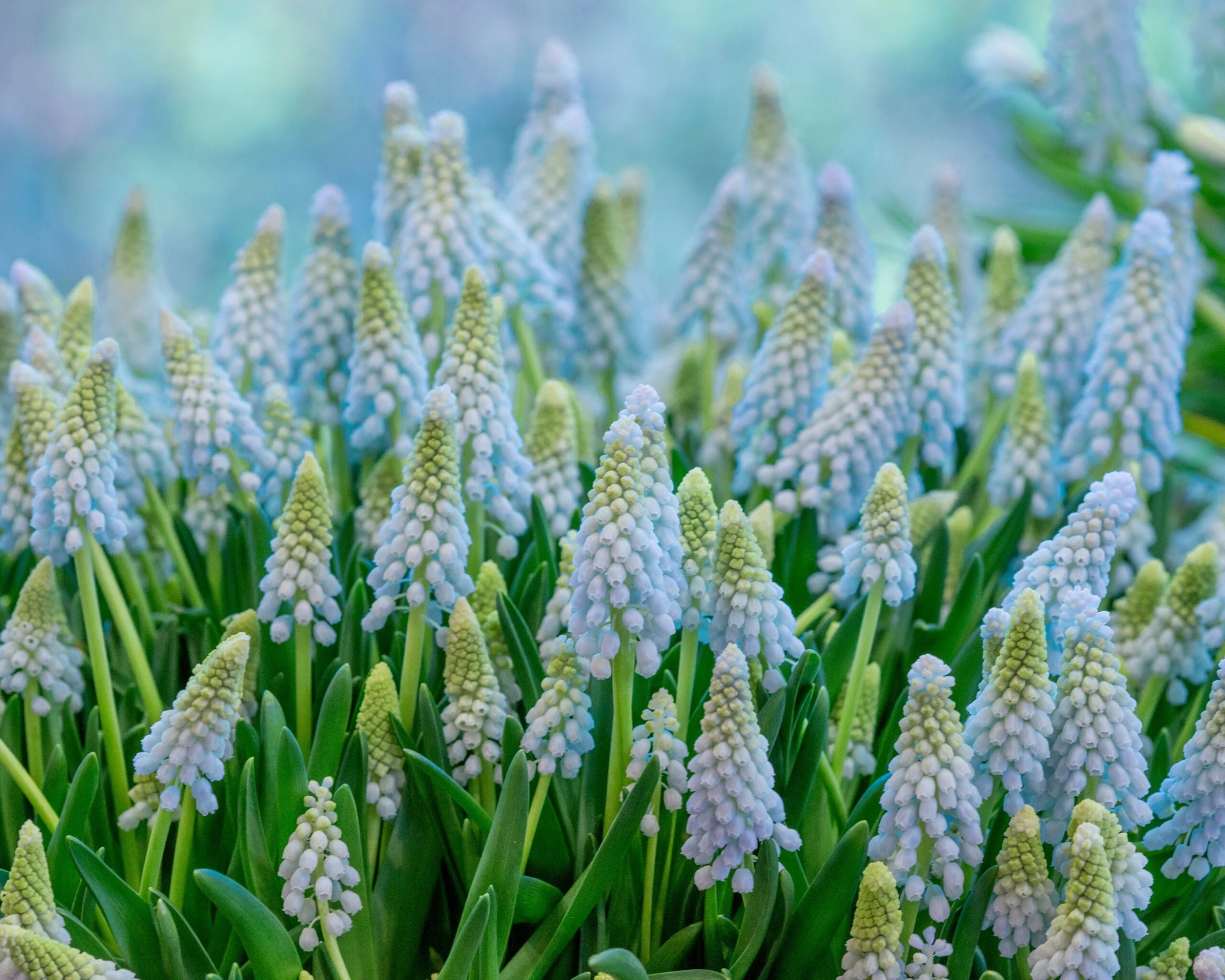 If you’re looking for soft blue, romantic shades, Muscari ‘Baby’s Breath®‘ fits the bill. Be sure to make them a feature of your spring garden’s floral design.