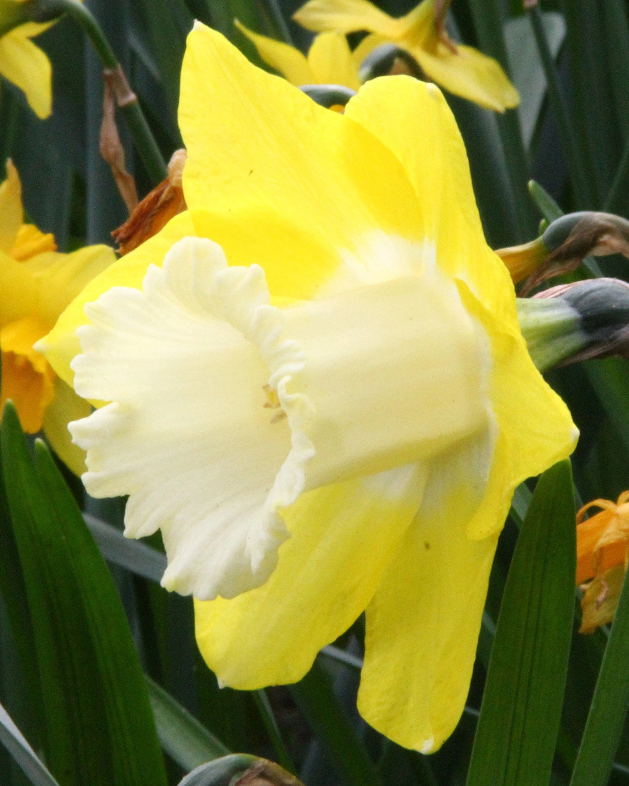 Romance blooms with large-cupped Narcissus ‘Avalon’ and its mists of softly coloured blooms. Creamy gold outer petals surround a central cup of creamy white creating an unusual contrast that seems to turn everything you thought you knew about daffodils on its head!