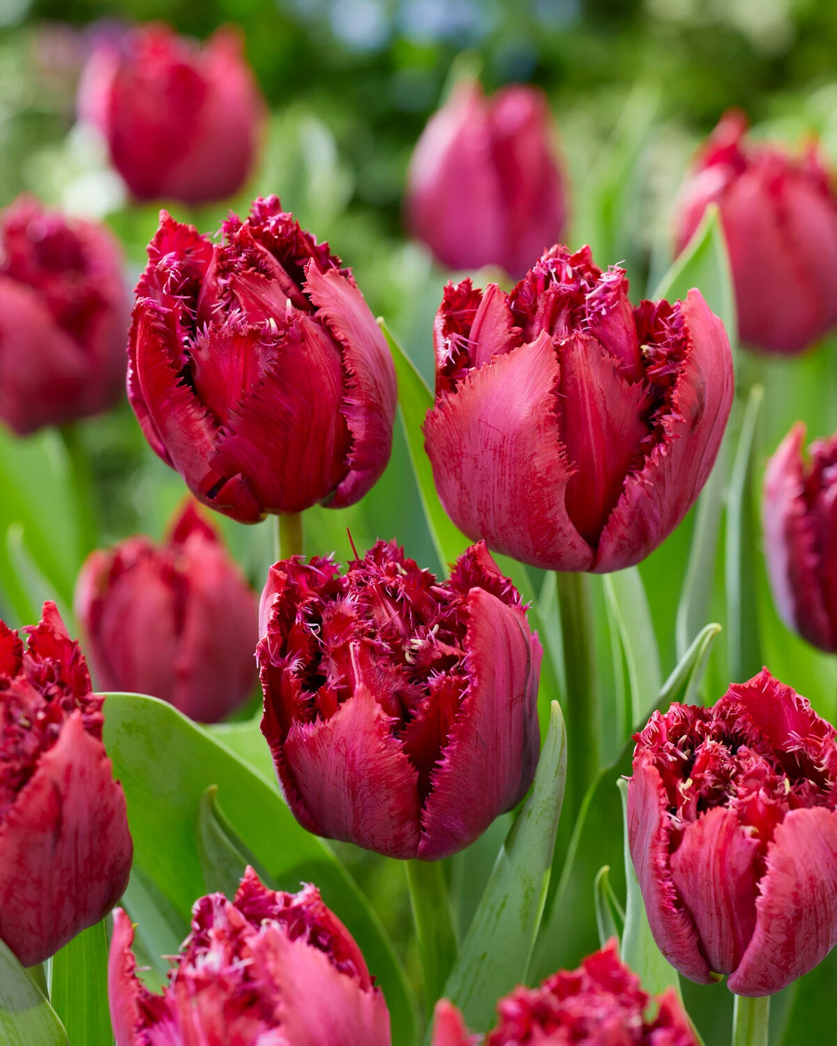 With its panoply of deep wine-red, silky petals and the distinctive, spiky margins of the fringed type tulips, Tulip ‘Cranberry Thistle’ has it all—a veritable smorgasbord of luxuriant colour and texture. Those rich hues sing out against pale green foliage, for a contrasting display that will be sure to draw compliments. Tulip ‘Cranberry Thistle‘ produces large, deep pluche red blooms, each one resembling a regal thistle. It‘s the perfect way to add a touch of drama to any garden.