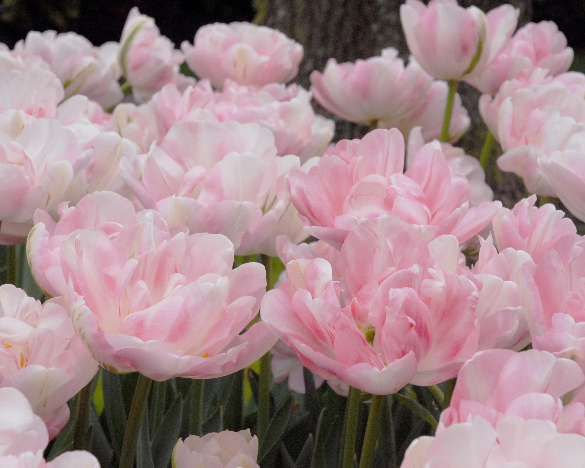You’ll fill your late spring garden with girlish femininity if you choose the fragrant Tulip ‘Finola’. This double late tulip’s frilled outer skirt, sometimes flashed with green, lifts and twirls to reveal its candy combination of bright pink and white petticoats. This display of cheeky playfulness will soften the sometimes flashy strength of other more strongly-coloured late blooming tulips, or add a cheerful note on its own, if planted in a group.