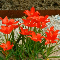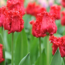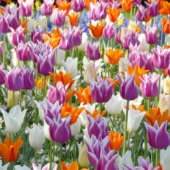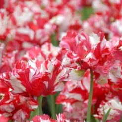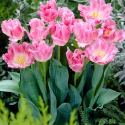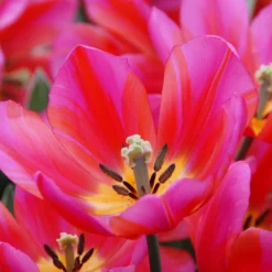 The brightest candy pink against a background of bright green – it’s hard to imagine a more striking combination in the spring garden. This is what Tulip ‘St Petersburg’, one of the Triumph Tulips, will provide for you. Petals of the brightest most intense pink imaginable open out of a pale cream to white centre and soften and lighten towards the edges. There’s nothing soft and girlish about this pink – it’s a strong statement in Tulip colour that would be stunning paired with Tulip White Dream for a different spring look. It would also make a bright note on your patio in a white container.